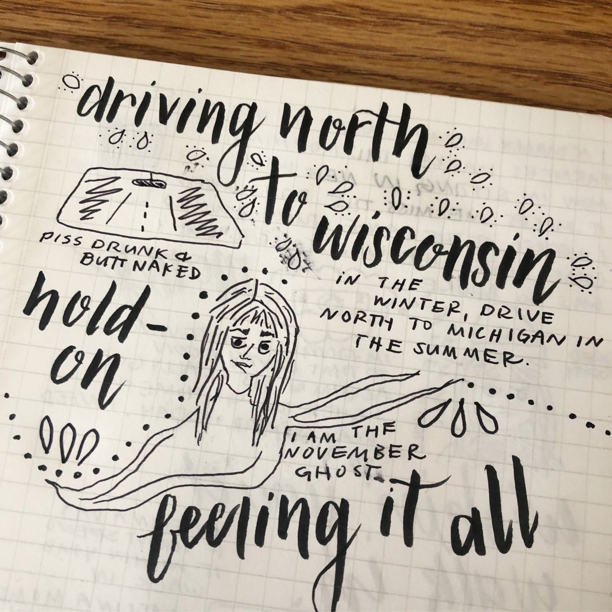 – There was one winter where my friends and I did drive north to Michigan in the winter for my birthday. We got so piss drunk that we got butt naked. I saw my best friend really cry for the first time. I then went into my own cold, cabin room and cried and took a picture of a knocked over mug of whiskey that said “Thinking Of You” on it and sent it to my then grown-up not-my-boyfriend-at-the-time boyfriend.